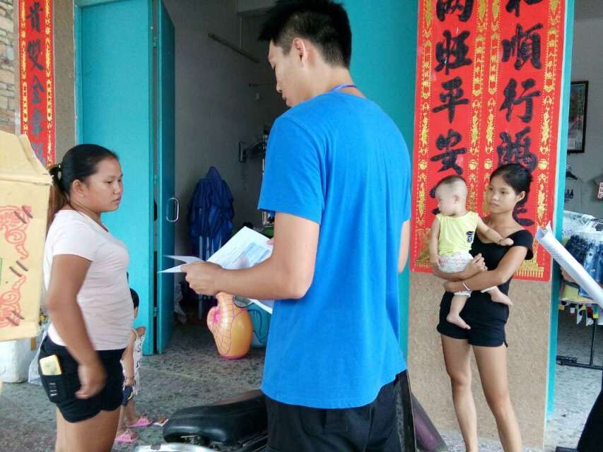 接送孩子的家长,路过白水小学的行人,路边卖鹌鹑蛋的大叔大妈……宣传队员们统统“一网打尽”,普通话、雷州话、粤语“三语齐下”。“这个挺好的,挺有意义。”一位接受采访的大爷笑呵呵地说道。