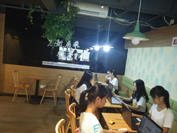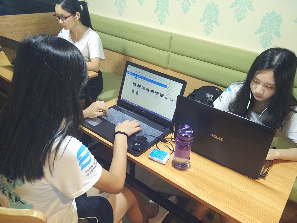 作为调研队伍,凌云实践队主要当然要以调研为主,但是凌云实践队背后有一支默默无闻的队伍,则是宣传组。宣传组内分为自媒体组和新闻组,摄影组。他们的任务则是对调研组一切的行踪状况及时地报导。而新闻组的任务则是对整支队伍所发生的事进行第一时间的报导。7月11日,新闻组的队员们带齐了电脑前往集合地点进行工作。每位队员脸上尽管充满了倦意,但是新闻组的队员们没有一句的抱怨,依然撑着疲惫的身躯投入到新一天的工作上。