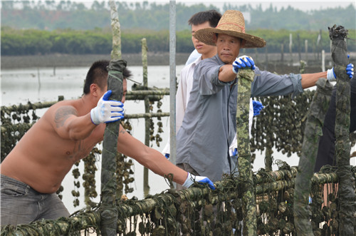 生蚝是水生动物,需要长期浸泡在水中靠吃浮游生物来生长。根据生蚝此特性村民们就想出使用插柱法和吊养法来养殖生蚝,而这两种养殖方式也成功得到了推广,普遍适用于附近海域的生蚝养殖。
