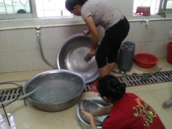 当唐家镇的夜幕褪去,抬头便是纯净的晨空,老师带领着学生在校园进行清洁工作迎接新一天的到来。而在唐家中学为队员提供的临时厨房里,负责厨房工作的队员在简短的讨论中确定并分配好任务后,开始了今天陌生的“煮角”日常生活。