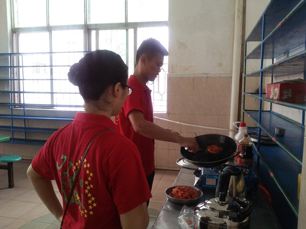 7月12日,这是岭南师范学院伴我同行社会实践队正式上课的第一天,也为我们在三下乡活动里正式面对柴米油盐拉开了序幕。在唐家中学食堂里,厨房的那些事儿正向着队员发下了战书。