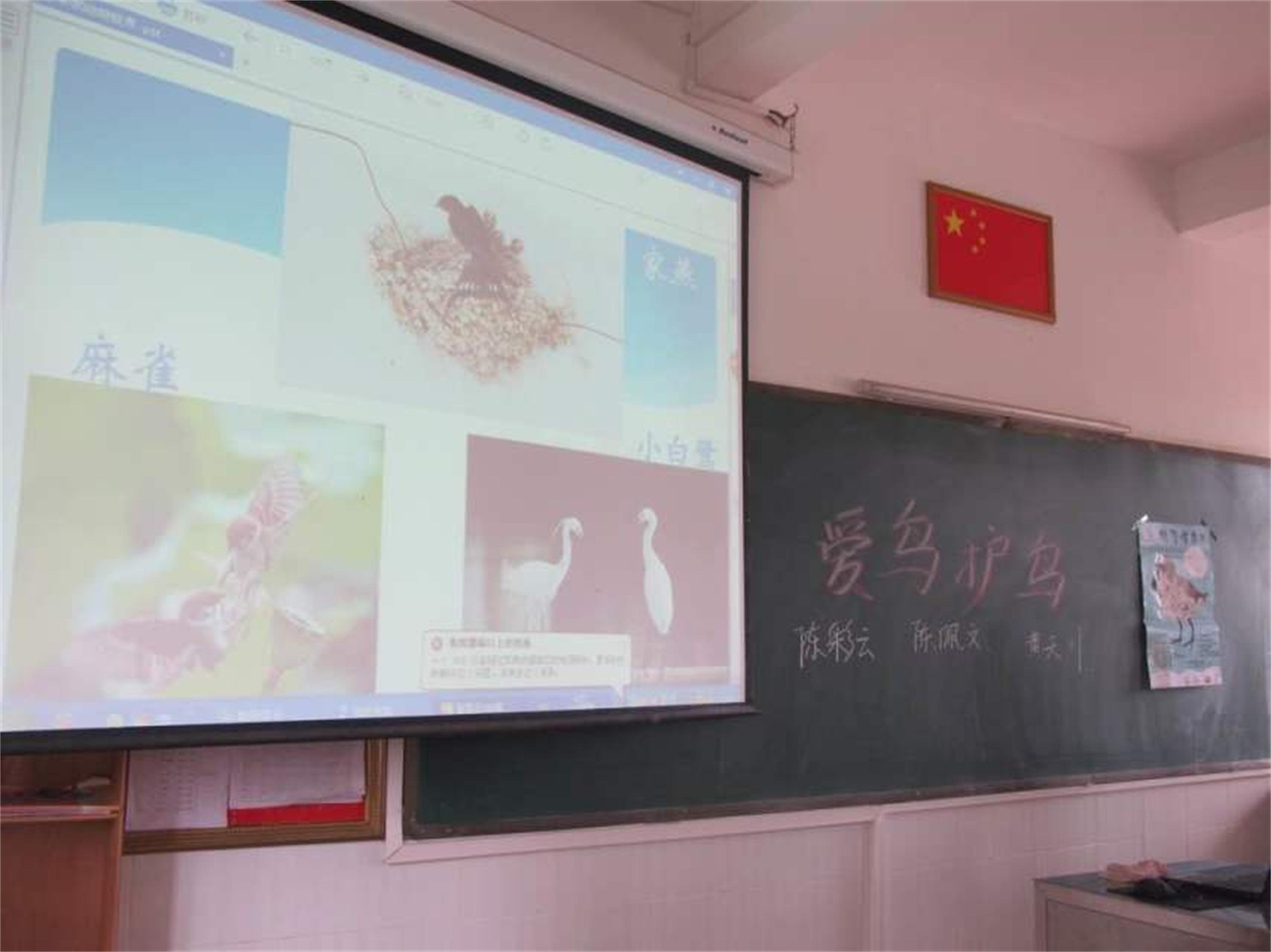 本次宣传活动开始前,迎曦社会实践队的"爱鸟护鸟"知识宣传组成员先进行自我介绍,接着便在同学们充满求知欲的目光下开始本次宣传。宣传以介绍鸟类开篇,然后揭示目前鸟类生存条件遭到破坏导致鸟类数目急剧下降等问题。宣传队员们还通过让学生们参与看图猜鸟类名称等游戏方式增加学生们对鸟类的识别能力。宣传活动以和学生一起观看以《人类是如何一步步毁灭地球》为题目的视频并让学生自己为视频命名的方式结束,让学生们加深对自身所依赖生存的星球——地球所存在的问题有了一定的了解,提高了学生们环境保护的意识。