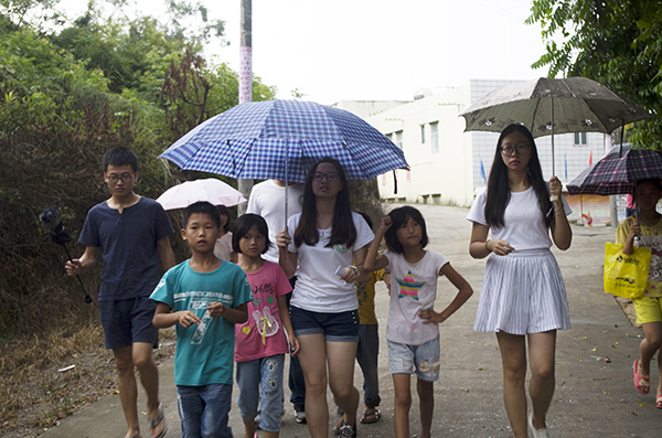“我家好远的,在山的那边。”敏敏说。即使如此,队员们还是冒雨翻过了两座山丘到达敏敏家中。在陪同小朋友回家的过程中,队员们真切地体会到路途的遥远崎岖。敏敏和爷爷奶奶一起生活,她的父母与姐姐弟弟都居住在佛山。“我一放假就去佛山玩,去找爸爸妈妈,那里好好玩的。”在四天的相处中,老师与学生已经建立了一定的感情基础,敏敏还主动邀请艺曦实践队队员吴文丽到自己的房间,与小老师一起分享父母送给她的各式各样的生日礼物。吴文丽说:“敏敏好懂事,一进她家就给我们洗水果送饼干,刚刚还在路边摘了朵小花给我。虽然是留守,经常在家一个人玩,但是她还是很积极乐观的。”