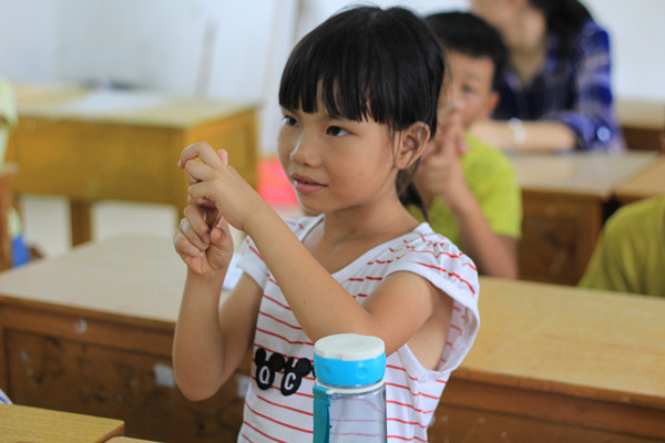 手语是人们交流的一种方式,手语也是一种很美的语言,是人们在无声世界里德思想交流。为了弘扬中华民族传统美德,唤起社会对残疾人的关心与爱护,让关怀之心在孩子们心中扎根生长 ,岭南师范学院星火实践队于2016年7月13日在泗水小学三年级为孩子们上了一节手语课,为他们上课的是星火实践队的队员.