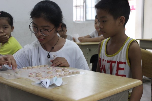 7月13 号,我参加三下乡生活四天了,依旧像往常一样,有时间就去旁听队员们上课。下午我去高年级听了节无比精彩的中国象棋课。原本以为高年级的学生都早早就会玩象棋。其实不然,发现还是有好几个学生连象棋怎么摆都不知道,站在我一旁的另一个跟班老师也说对象棋不太了解,基本没接触过。