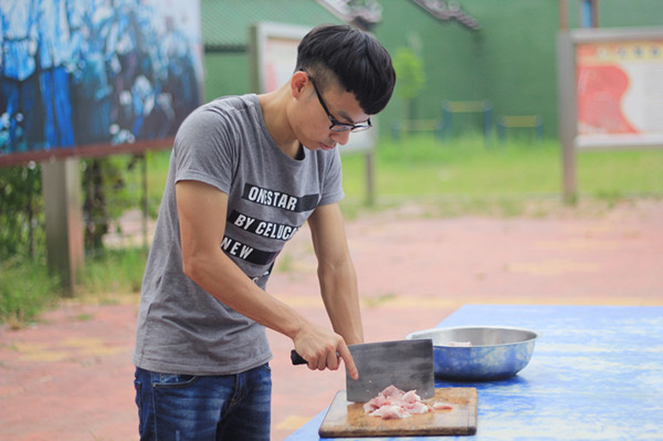 迎着微风,一路感受雨后的乡土气息。后勤组成员们拎着大袋小袋的菜,缓缓归来。在她们的共同努力下,一顿简单却充满欢乐的早餐做好了,当大家围在一张桌子上一起吃早餐时,这一幕是如此温馨。忙碌中时间总是过的特别快,中午不期而至。俗话说的好“民以食为天”,在一阵“嚓嚓”的切菜声中,她们便开始准备午饭了。在厨房内,我们可以看到大家认真的淘米、洗青菜、剁肉馅、刷盆子……一切都在紧而有序的进行。从厨房忙碌的身影中,我们看到的不仅是队员们的团体合作精神,还有他们的自我成长。从一个最初不懂做饭的大学生逐渐变成一个做饭小能手,在这些天为我们的一日三餐提供美味可口的饭菜。当大家都吃着可口的饭菜时,他们却在忙前忙后,总是最后吃的那一批。饭后,她们默默的在一旁刷盘洗碗,认真负责的做好一天最后的工作。无论多么的忙,他们却丝毫没有怨言,我想,这便是责任的力量吧。