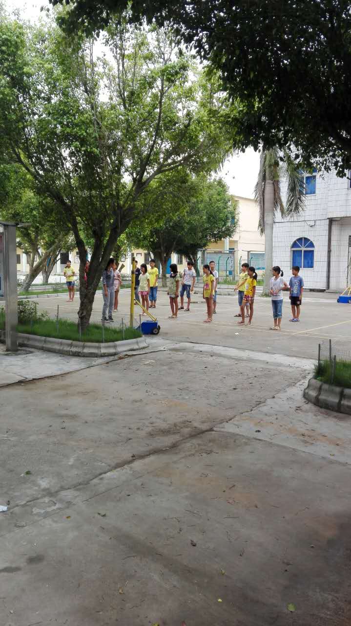 7月14日,吴川市覃巴镇上榕村上榕小学的操场里站着一排一排的同学,看似是在做早操或是在上体育课,但其实他们是在跟着活力稻草人的小舞蹈老师在学习健美操。