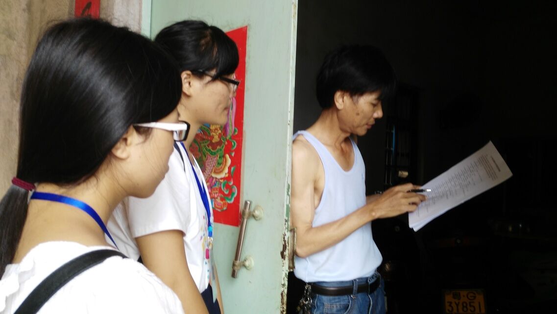 今天调研组的任务是去岭北镇调查镇上的年例和调丰村的年例的差异,希望更全面了解调丰村的年例。到达镇上后,组员们迫不及待地就开始问卷工作了。但是刚开始在店铺前对镇民进行问卷调查时,有几位阿姨因为对此次的调研工作意义的质疑而拒绝接受问卷调查,这点让组员们受到了少许的打击。不过这并没有让组员们沮丧,他们继续他们的步伐,继续他们的问卷。之后,他们试着跟镇民们解释这次对年例的调研的现实意义,让受访的镇民了解调研的工作,慢慢地镇民也开始理解组员们的工作,开始越来越多的镇民愿意接受问卷调查了,说的话也越来越多。通过沟通,镇民们慢慢地把身上对调研组组员们的防备放下,和他们分享越来越多的东西。