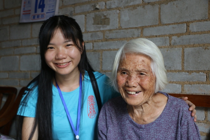 经过简短的工作安排,8点30分,新的卫生下乡小分队从学校出发,前往事先安排好的老人的家中。昨晚刚下过一场雨,原本泥泞的小路变得更加难行,队员深一脚浅一脚地行走在小巷里,但我们服务的热情丝毫不减。在共建队员的带领下,我们顺利到达了第一家老人的家门前。队员敲响陈旧的铁门,嘴里呼唤着屋主人,门的那边传来了一阵老妇人的声音,为我们开门的是一位瘦弱年事已高却精神矍砾的老人。还没等我们介绍自己,老人就热情地拉着我们队员进屋,瘦小的身躯因为我们的到来而兴奋得微微颤抖。心想,老人家里怕是很久没来过这么多大学生来家里了吧。一进门,老人就用当地方言给我们聊起家常,从老人的口中得知,老人育有六个子女,在吃不饱穿不暖的年代是一件非常艰辛的,老人还欣慰地说,现在三个女儿嫁到了离家不远的信宜市区,逢假期她们都会回来看望,儿子都有不错的工作。说到这里,老人总是掩盖不了脸上的喜悦。
