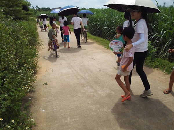 红色的光如同火箭般射到地面上,烈日炎炎的好似火在烧。今天天气仍然炎热,我们每人负责接送两三个小朋友回家。我负责接送两个四年级的和一个一年级的小朋友,那两个高年级的比较调皮,一路上嘻哈打闹,四处乱窜。一年级这个小朋友看起来比较乖巧,晒得漆黑的肌肤,圆圆的大脑袋,一路上乖巧的安静的走在我旁边。
