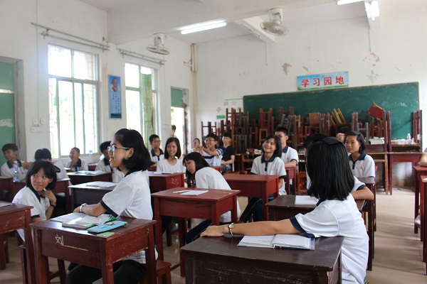 在这个闷热的课室里,时而有凉风习习,带来丝丝凉快。而在老师松弛有度的讲课下,活泼的学生们偶有窃窃私语,但对老师的提问皆是认真思考回答。