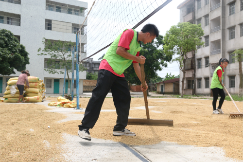 夏季是南方水稻的成熟季,也是天气最频繁“变脸”的季节,农民们的稻谷总会遇上刚晒开一会,就被突如其来的雨淋湿的情况。红土情缘社会实践队听说了农民的困难后,决定趁着阳光,一鼓作气,帮助农民们将xx公斤的稻谷晒完。