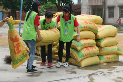活动中,志愿者们同心协力,不分男女,一把将麻袋扛起,“三、二、一、起!”的呐喊声此起彼伏。据了解,红土情缘社会实践队较大部分志愿者来自粤西农村地区,在家中常做农活,区区晒谷难不倒他们。