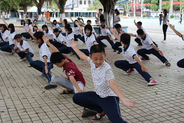 下午第三节课是体育课,说到学生时代,最爱的除了下课时间就数体育课了。“倍努力”社会实践队在雷州市客路中学开展的体育课程与一般中学有所不同,有健美操、武术、散打等等。