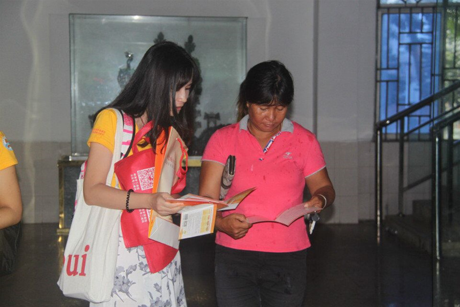 恰逢是吴川一中中考录取通知书领取的时间,校内非常多的学生和家长。繁星实践队的队员们开始在钟楼对学生和家长进行国家助学贷款政策问卷调查。对此次下乡行活动宣传的内容,学生和家长都非常感兴趣,纷纷前来了解和询问。