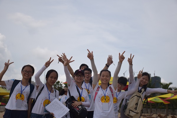 7月15日,微微泛光的金沙湾海滩上,身着“小太阳”队服的凌云社会实践队队员手捧问卷,如勤劳的小蜜蜂般四处向路人开展问卷调查。