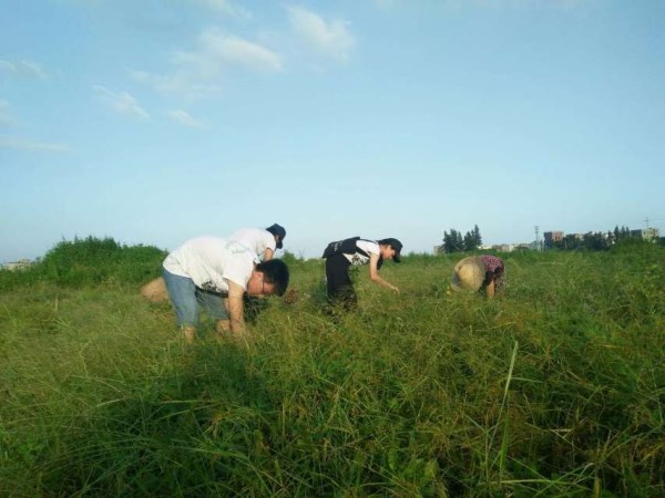 于是,今天下午,我们开始了另一种调研方式,我们积极地参与到了乡镇的农田里去。一开始,由于语言上的不便,正在田间劳作的当地人不怎么配合我们的工作,甚至有种厌恶与驱逐的倾向。但这并不能阻止我们的脚步,我们二话不说地和他们一起劳作,当汗水和田里的泥土融为一体的时候,仿佛有一种和他们共进退的感觉。慢慢地,他们看见了我们的来意为善,开始愿意和我们交流。交流得越深入,我们越是发现一些我们在问卷上得不到的数据,越是这样,我们越是欣喜若狂——我们不仅得到了更为有用的数据,还帮助了他们更快地完成了他们的劳作,减轻了他们的负担。
