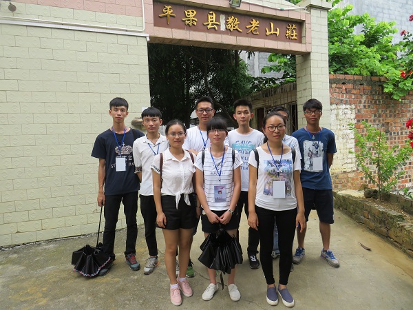 7月18上午,“始于足”实践队十队员在副队长的带领下,身带工作牌,一起乘坐公共汽车前往广西平果县敬老山莊看望孤寡老人。