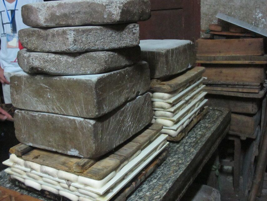 经过近半小时的行程,我们来到了一个面积不是很大的店铺,老伯正在制作豆饼,我们来的比较晚,因而错过了精彩的原料和磨浆部分,直接跳到了煮浆和制作豆饼模样的环节。其中,热情的阿姨还为我们全体组员准备了美味滑嫩的豆腐花。
