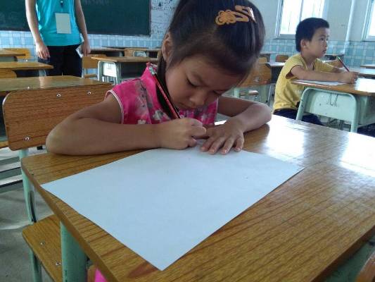 下午2点30分,我要上的是一年级孩子的课程。一年级的他们,活泼天真,调皮好动,小小的心灵装着大大的世界。一进教室,嬉闹声,尖叫声,充斥着耳膜,刺激着心脏。我拍拍了手,示意他们迅速安静下来,回到座位做端正,他们也很尊重我,回到座位开始安静下来。“这节课是画画课,我们一起来画画,好不好?”他们期待地抬起小脑袋,用整齐而响亮的声音回答“好!”