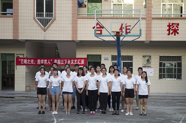 7月19日下午五点半,秉承“心系嫩芽,艺术阳航”的口号,岭南师范学院“艺曦”社会实践队于廉江市和寮镇塘肚小学举办以“艺曦之光,美学育人”为主题的三下乡文艺汇演活动。出席本次活动的嘉宾有塘肚小学校长张志旺、副校长赖炳奎及各名老师,艺曦社会实践队全体成员以及参加三下乡活动的学生们,学生们的家长也前来观看。