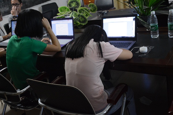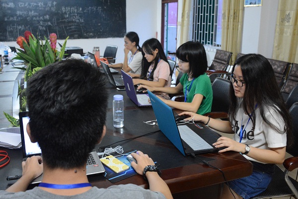 白天奔走在校园的各个角落,吃过晚饭的他们在短暂的休息后,便开始把白天的所见所想,组成文字,记录成文。想象中的噼里啪啦的键盘声并没有出现,只是偶尔在某个角落传来键盘的敲击声。不少组员或手肘撑着脑袋,低头沉思;或眼睛紧盯着电脑,双手保持着敲击的姿势。他们每完成一篇稿,都要花上几个小时。行云流水、一气呵成的完成一篇稿的情况在这里并不会出现。每一篇稿子的完成,都是宣传组成员绞尽脑汁、冥思苦想的结果。斟酌用词,只为能够准确生动地描述孩子们上课时认真的神情、玩游戏时纯真的笑颜;反复推敲,只为能够记录下同伴们在三下乡工作的点点滴滴。基础差,没写过新闻稿,就去相关的新闻网站看看他人是如何地写成一篇新闻稿的;不会投稿,就自己上网查询网站的投稿要求,或找有经验的人请教。他们,偶尔会抱怨工作的辛苦,却总在转身之后,把所有的辛酸丢在后脑勺……