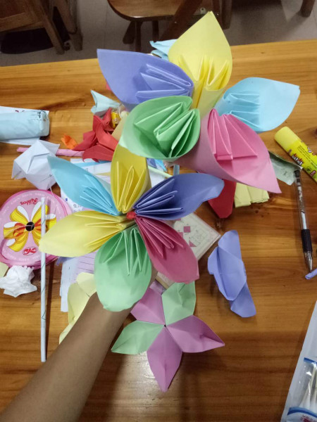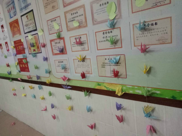 这几天看到无数张笑脸,他们纯真的笑容深深印刻在我的脑海,恐怕再也挥之不去了。他们会因为学会折纸鹤而高兴地冲到办公室想要送给老师,以至于整张桌子堆满了纸鹤,手工老师精心地把它们串起来,挂在办公室后的墙上。他们会伴着歌声跳舞,黄昏将至还不肯回家,准备着明天的文艺汇演。他们脸上洋溢着幸福的笑容,而每当我看到他们的笑容,一天疲惫瞬间消融,“什么都值了,真的”我想。