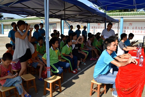 当黎明悄然而至,队员们早已从睡熟中起来开始准备汇演,搭帐篷、搬桌椅、抬音响设备及试音等等。队员们忙碌的身影,是给雅塘中心小学留下最后的一丝回忆。早上8时30分左右,当一切都准备妥当,这场盛宴便在主持人的号令下正式开始。学生们都已就位,校长和队长都分别对活动致辞,表达了最真挚的谢意。