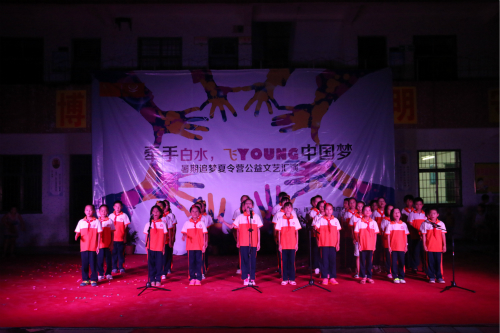 大雨冲洗掉烈日带来的烦躁,精神百倍的学生们和“红土人”在舞台上尽情展示他们的才华,让众位领导以及白水村民“检阅”红土情缘社会实践队开展第二课堂的成果。晚会现场人山人海,热闹非凡。
