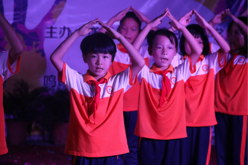 动感十足的开场舞《bangbangbang》拉开晚会的序幕,该节目由“红土情缘”6名女队员和5名男队员震撼出演,充分调动观众的情绪。接着,大合唱《我们是共产主义接班人》道出三十种希望,大家陶醉在孩子们的歌声里。紧接着,圆梦文化艺术培训中心一群可爱的孩子带来精彩的舞蹈《春茶香》。