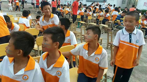 在晚会开始的那个下午,我帮武术的孩子们化妆,三条杠在脸上,象征着军人男子汉!帮他们画的时候几个小男孩还好害羞,一直在笑,然后画好了那个嘚瑟样,真的好可爱。还有!不能叫他们小屁孩,要叫男子汉!不然他们会生气的。