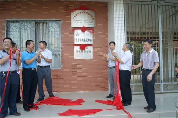 为提高青少年对野生动物的保护意识,加强对他们的科普教育,7月2日下午,岭南师范学院生命科学与技术学院在实验楼前举行青少年科普教育基地揭牌仪式。出席本次活动的领导有岭南师范学院邵乐喜副校长、湛江市科学与技术协会肖斌主席、湛江市林业局张文胜副局长、湛江市林业局陈秋勇副科长、湛江市科学与技术协会黄承礼部长、生科院袁长春书记与陈道海院长、湛江市第十六小学李副校长、湛江市一中培才学校劳云飞老师以及代表学校的中小学生与我院学生代表。