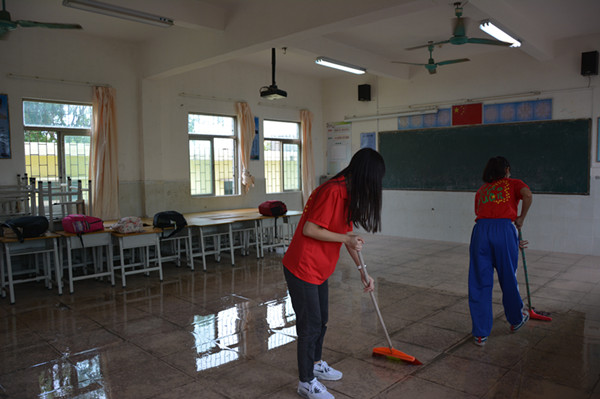 在大家把行李搬进学校后,队员们一起合作搞起了宿舍的卫生,男生提水,女生扫地、拖地,工作有条不紊地进行着。突然间,一个两个小身影在人群中晃动,一个瘦小的男孩搬着一大袋行李颤颤巍巍地从一楼到了三楼,另一个有一个男孩索性从一位队员抢过笤帚打扫起了卫生,很认真很认真,一丝不苟的模样,我们就在谈笑间把卫生搞好了。准备就绪后,队员们亲自下厨做了个简单的晚饭,就这样简单的生活,却充满了简单的爱。这一幕幕,无不体现中华的传统美德,“诚“、”信:、“礼““义”尽显无疑。每个中国人的骨子里都藏着中华传统美德的精髓。
