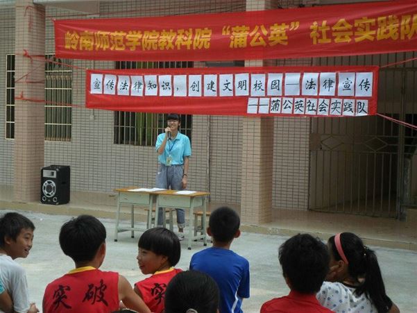7月13日,教科院蒲公英实践队队员于限口小学教学楼前为全体学生开展了一场维持40分钟的法律小讲堂。由于小学生法律意识薄弱,对法律的概念理解模糊、不了解如何运用法律来维护自己的权益和规制自己的不良行为,这就需要一节关于法制教育普及的课堂,为同学们讲解法律的相关知识,使他们做到不违反法律,并通过一些通俗易懂的实际行为案例为同学们讲解法律知识。