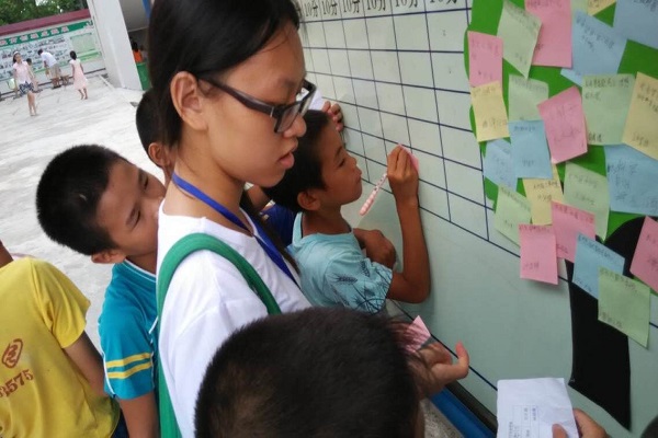 7月15日,岭南师范学院“心暖花开”实践队在湛江市遂溪县蚕村小学开展了一场精彩有趣的心理游园会,学生们积极参与,尽情展露属于孩子们独有的稚气与活泼纯真的气质。