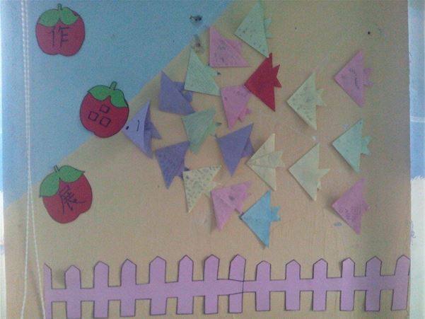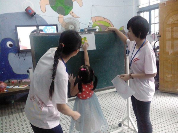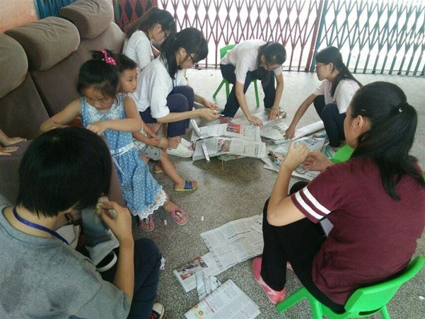即使迎来了周末我们也不能休息,因为我们想三下乡除了传播知识和精神,还能为这些孩子留下什么呢?能为这次下乡的幼儿园做些什么改变呢?是的!一支善于思考的队伍,必定是不断在观察周围环境,并善于发现亮点和主动改变的队伍!经过考虑讨论,我们决定实践操作:第一把平时上课的手工作品布置教室、第二重新布置幼儿园的一面外墙环境。