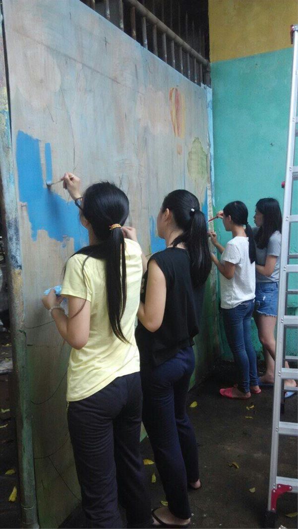 当时的大雨把我们的心都淋凉了,多害怕未干的颜料被雨水冲刷掉!幸好,老天眷恋我们,没有淋湿!