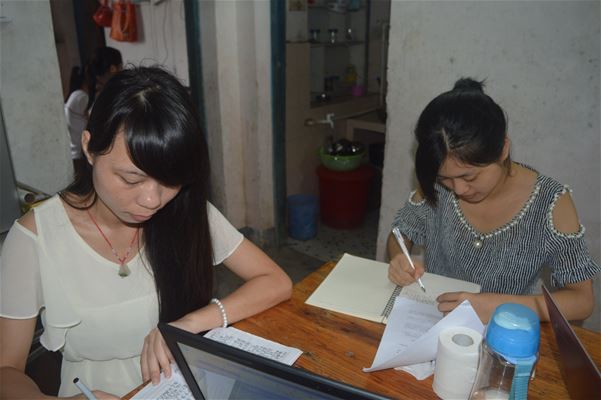 随“奔跑吧”社会实践队来到吴阳镇的吴阳中心小学的第一天,除了舟车劳顿,还得把幼儿园教室变成我们的寝室,打扫,整理,已经很累了。而且直到下午两点我们才吃上一碗小小的素面。恰好那天体科院的副院长以及两位辅导员前来视察并慰问我们,这是三下乡的大事件之一,一定得报道的。所以新闻组的组员们还没还得及好好休息,就开始投入到工作当中了。我们队伍还比较特殊,基地没有网络,发稿就成了问题。还好吴阳中心小学的副校长宿舍有网络,并且他慷慨地将宿舍贡献出来给我们工作。也许你会说副校长的宿舍一定很大很舒服。但是事实是,教师的宿舍楼都是很破很旧的,而且很狭小很闷热。我们新闻组5个人就“蜗居”在那间小房子里工作。