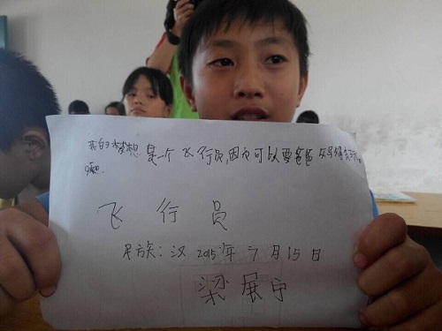 也许,原本的他们还不懂梦想的真正含义,但在这一节课里,他们却用他们的理解,诠释了他们的梦想。在山清水秀的罗勒小学里,他们这群孩子拿起笔,在同样的纸上,小心翼翼,一笔一划,用歪歪扭扭的字体,写了又涂,涂了又写,那全神贯注的神情,让人感到无限的魅力。