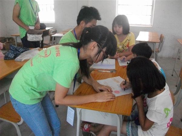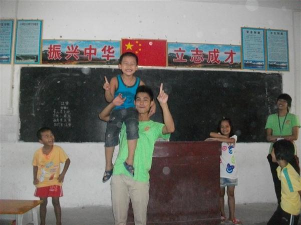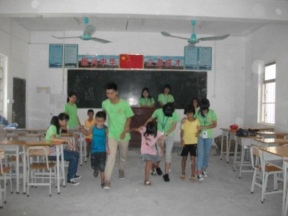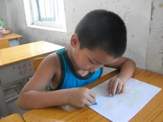 活动伊始,为消除留守儿童对陌生人的心理隔阂,拉近队员与他们的距离,该队特意为8位小朋友准备了小游戏,同时该队的部分队员也加入到游戏中来。游戏采取的是分组游戏,有奖有惩原则,对游戏中获胜的组别进行奖励,而落败的组别则要求队员为大家献上一个节目。活动的最后一个环节是让小朋友畅想自己的未来,并将它在画纸展现出来。整个活动下来,小朋友由最初的拘谨到最后的笑声不断,融洽和谐的氛围在整个教室弥漫开来。