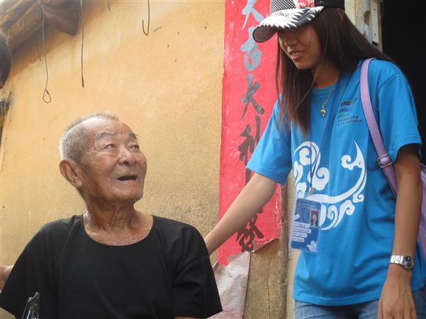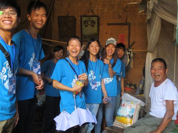 路程偏远,虽说不是九曲十八弯,但坐在车上颠簸不停,半个小时后一间间茅屋映入眼眸,真不敢相信那是老人住的房子,没电,没窗。这次活动主要走访3位老爷爷家。三位爷爷都是八十岁以上的高龄,行走不便,第一位老爷爷家,队员们第一反应就是扶老爷爷坐好,把大米放好,爷爷看到大米“你们是凑钱买的吗?那么贵,你们怎么有钱。”据了解每逢下雨天,爷爷就会把煲放上那只有几根小木棍弄成的床顶接那从瓦缝里漏下的雨水,听到这些队员们淡淡忧伤泛起心中,道别前还叮嘱爷爷要注意即将到来的台风。