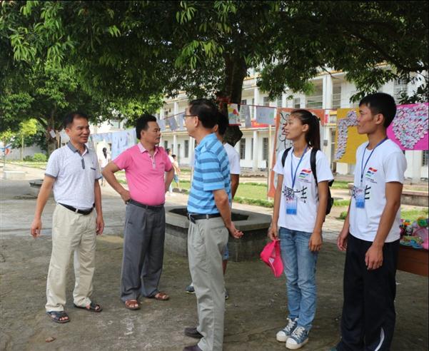 两天时间里,学院领导老师共走访了吴川市吴阳镇大坉小学、上郭小学、遂溪县城月镇广丰小学、雷州市乌石镇那毛村那毛小学、雷州市覃斗镇铺前村铺前小学等5个基地的实践队伍。每到之处,学院领导参观了学生的教室、实践队员们的宿舍和食堂,并与基地的领导和实践队员亲切的交谈,询问大家实践活动的进展,下乡后的生活状况,安全保障措施等,对实践队伍遇到的困难给同学们给予指导。