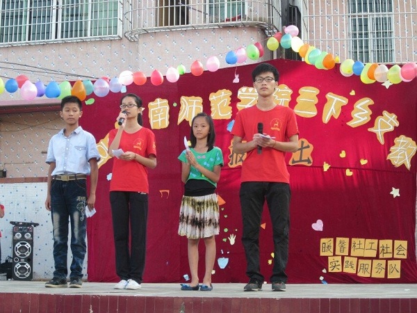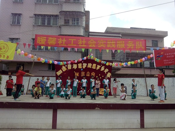 7月17日上午,我校“暖馨社工”社会实践队在林尘中心小学举行了汇报表演,汇报表演是大学生暑期三下乡的重头戏,此次汇报表演将为该队三下乡画上一个圆满的句号,届时林尘中心小学黄副校长、赵主任、“暖馨社工”社会实践队全体队员及被支教小学生参加了大会。