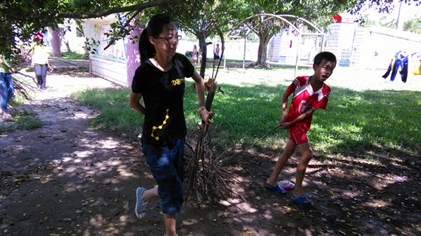 晴天社会实践队实践地唐家镇坡边小学正是位于雷州半岛,为了应对接下来两三天里的台风天气可能造成的断水断电的影响,17日中午该队集体商榷决定集体上山拾柴囤积,断电的几天里,烧柴做饭。
