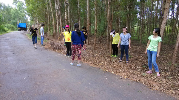 正所谓众人拾柴火焰高,不一会的功夫,马路边上堆满了大堆小堆干柴,累得够呛的女生们在一旁歇息的时候看着如此成果有自己一份功劳都不免有点小得意,纷纷掏出自拍神器,给自己的欢乐捡柴记留个纪念。不料此时,一农夫驾驶一辆牛车经过,车后还跟着一只小牛犊,不知怎的,那小牛犊一个前跨后仰,挣脱开了牵绳,往树林里狂奔,吓得在树林里一女队员一声尖叫并以五十米冲刺奔出马路边。可能是被那女高音吓着了,小牛进了树林立刻镇静下来,不一会又绕出树林跟着老牛悠然前进。虚惊一场后,大家又开始调侃发出高分贝女声的队员吓着了刚才那奔放的小牛,欢乐的心情不但没减反而更浓。