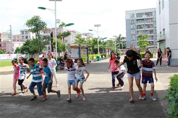在二人三足比赛中,由于场地限制,学生们只能顶着热辣辣的太阳参与,尽管酷暑难耐,但是学生们仍然不烦躁,不退缩,在烈日下挥洒着汗水。令实践队老师们非常欣慰的是,在参与活动的过程中,学生们都能学到共同合作,互相帮助的体育精神。有的队友跌倒了,其他人会连忙去扶起,而不是为了赢得比赛,不顾队友。