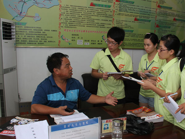 7月11日湛江师范学院法政团委三下乡实践队调研组7人一行,来到贵州省遵义市余庆县新农村试点赵家沟,对该村进行文化建设方面的社会调研,以了解文明县城余庆关于文化建设具体方针政策和实际所取得的成果。