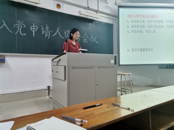 首先,开展党史学习教育与青年思想建设。2021年是中国共产党成立的一百周年,为深刻申请人对党史的了解,提高申请人的思想水平,学生第一党支部副书记杨敏围绕“入党教育”和“思想教育”对申请人进行谈话。学生第一党支部副书记杨敏由“为何展开党史学习教育”而引出党史学习教育的重要性,以及学习党史学习教育的必要性;她对党史进行了讲解,她指出历史的力量是无穷的、是可以造福一个国家的,而更加深刻学习党史学习教育,也将助于我们不忘初心,助于我们更好的去探索真理,更好的去尊重规律,去掌握党的精神。她还围绕“党史学习教育与青年学生思想建设的有什么关系”这一问题进行了讲解,引申出我们应该通过了解历史,珍惜当下、了解传统文化,丰富精神脉络、树立理想目标、追求自我价值、吸取历史经验,增强忧患意识去上好党史学习教育与思想教育这课题。她也指出思想建设的重要性,思想教育关系到党的事业的兴衰成败,建设好思想教育工作可以提高自身凝聚力,我们把党的思想政治建设放在首位。