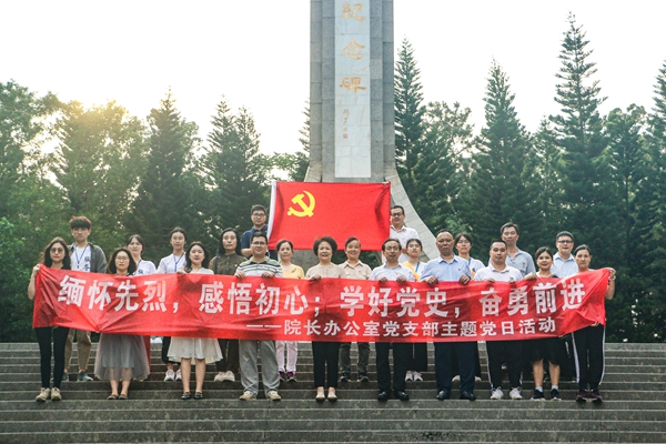 党支部书记赫云鹏强调,今年是中国共产党成立100周年,院长办公室党支部开展此次主题党日活动,既表达对革命英烈可歌可泣的英勇事迹的敬佩,又砥砺党员干部时刻牢记初心使命,党员干部要传承红色基因,赓续共产党人精神血脉,以更加饱满的热情投身本职工作,切实发挥共产党员的先锋模范作用,为学校事业发展不断贡献新的力量。