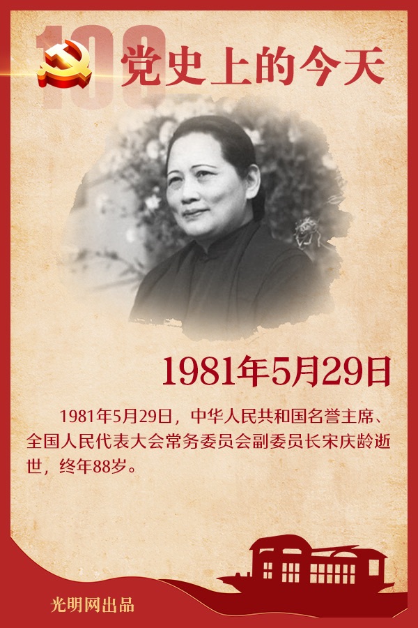5月29日 中华人民共和国名誉主席、全国人民代表大会常务委员会副委员长宋庆龄逝世,终年88岁。中共中央政治局于5月15日决定接受宋庆龄为中国共产党正式党员。全国人民代表大会常务委员会于5月16日决定授予宋庆龄中华人民共和国名誉主席的荣誉称号。